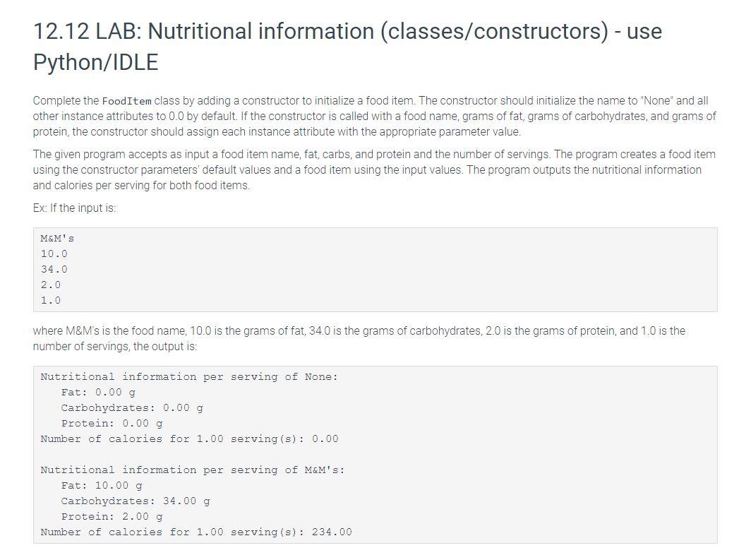 Solved 12 12 Lab Nutritional Information Chegg Com